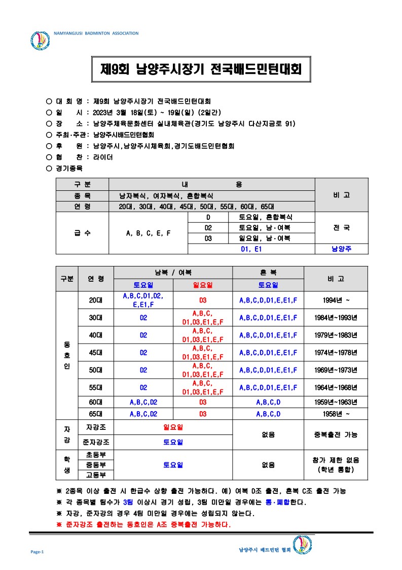 | 대회요강 | 2023년 제9회 남양주시장기 전국배드민턴대회 요강.pdf |