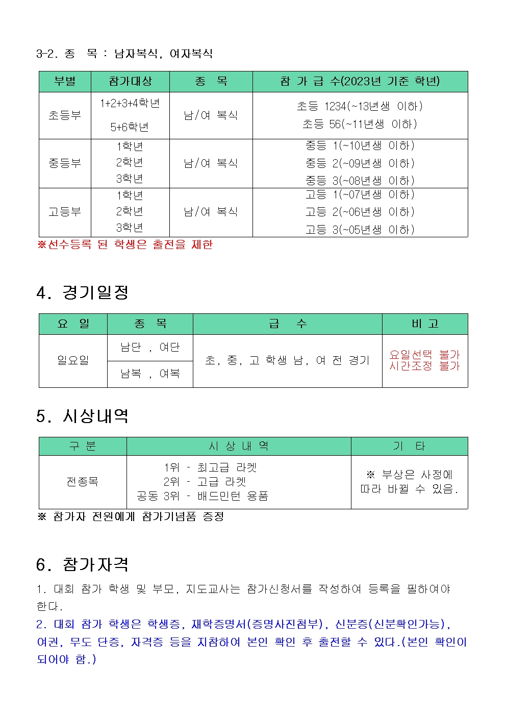 ※위의 대회 관련 내용들은 대회 주최 측 사정으로 예고없이 변경될 수 있으므로 착오 없으시기 바랍니다.