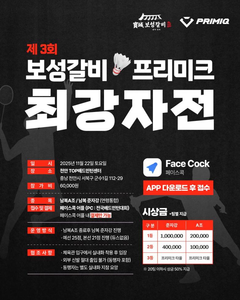 (취소)보성갈비 프리미크 최강자전 배드민턴대회